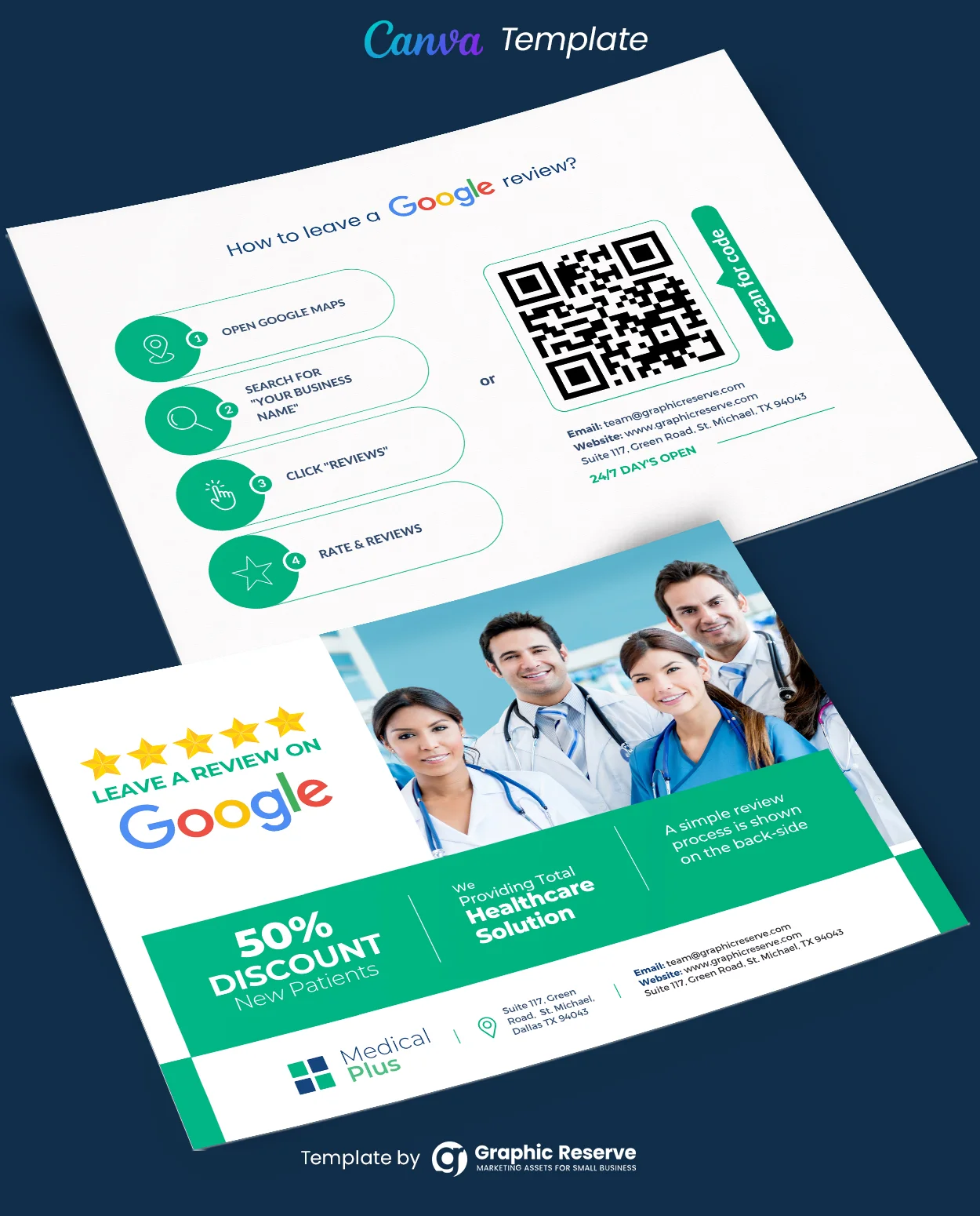 Medical Review Postcard Design Template for business purposes, Easy to edit online editable Canva template.