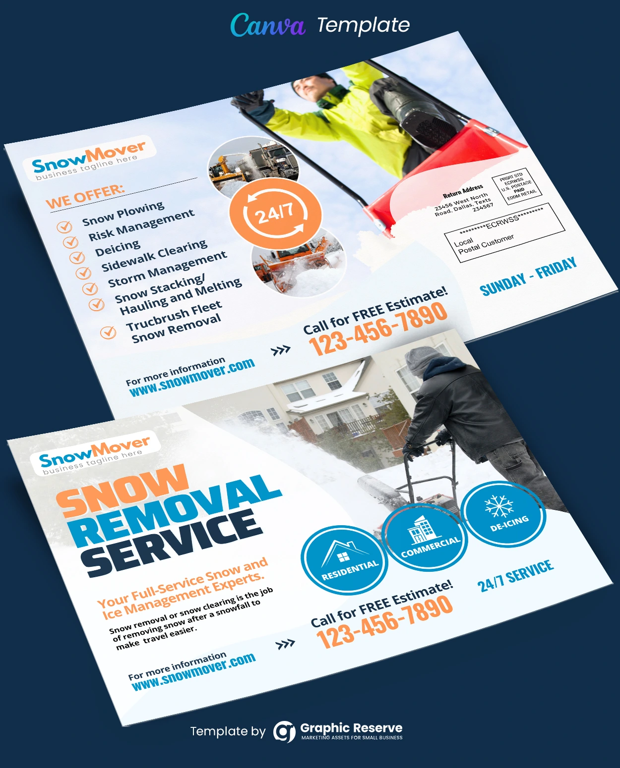 Snow Removal Service Direct Mail EDDM Design Template Easy online customizable, all you need to know is the very basics of Canva to change your details and images then It`s print-ready!