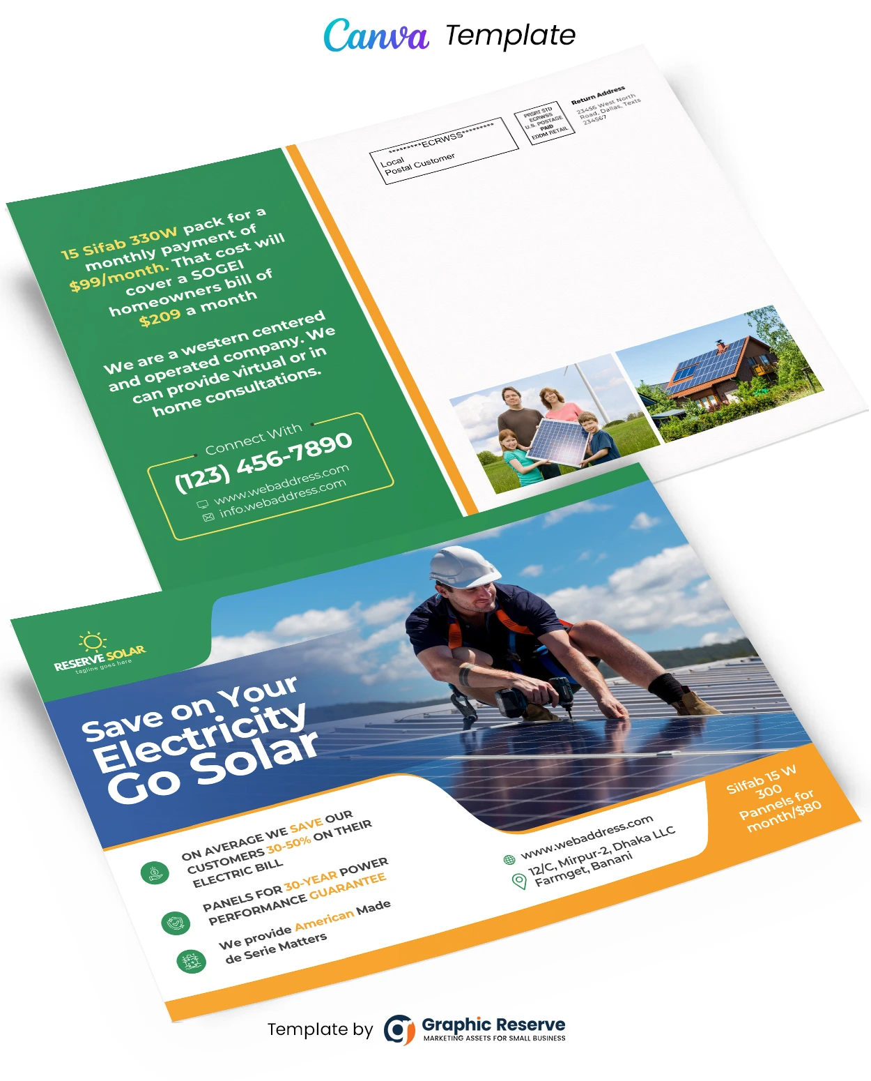 Solar Direct Mail EDDM Postcard Canva Template