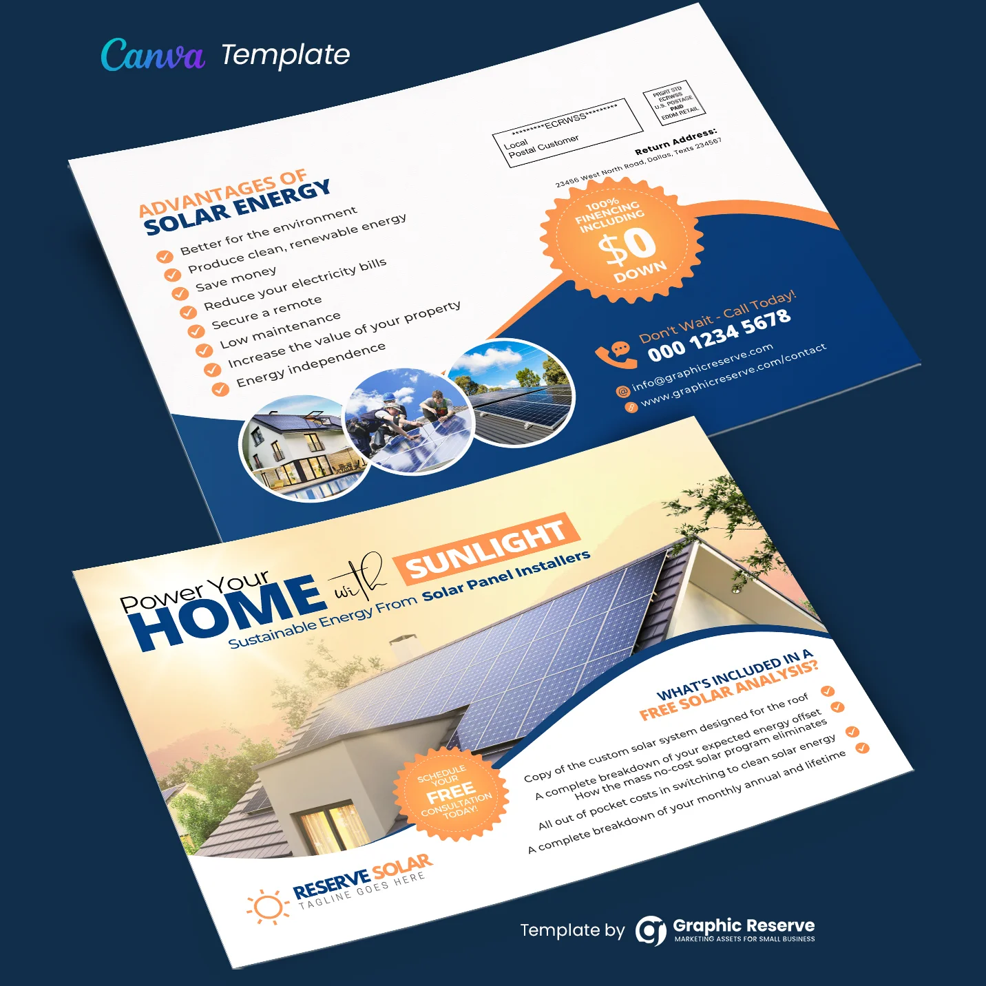 Solar Direct Mail Marketing EDDM Mailer Design Canva Template